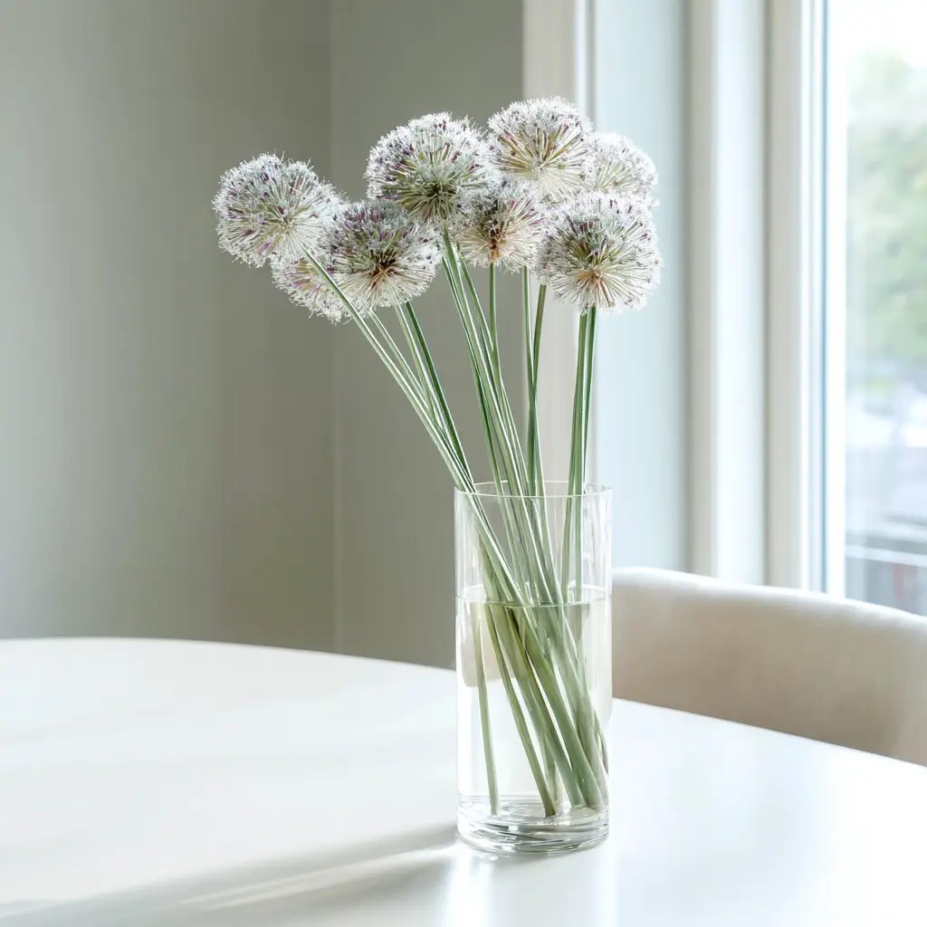 Cut alliums are outstanding for arrangements. Harvest when most florets have opened and condition in clean water. Fresh stems last about 7 to 10 days; seed heads can be dried and will keep their shape for months. Remove foliage, which can carry onion scent, before using in indoor bouquets.