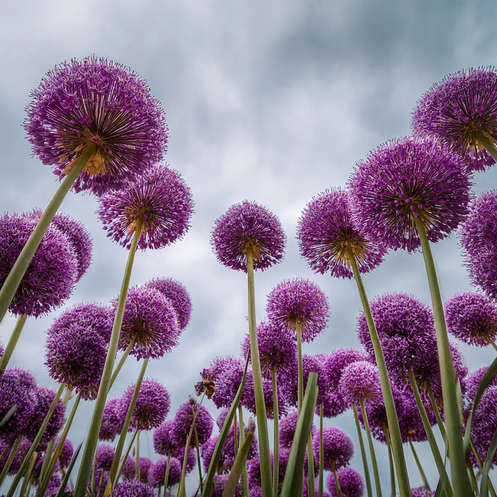 Look for Allium giganteum, ‘Globemaster’, and ‘Gladiator’. For mid‑sized spheres, try ‘Purple Sensation’.