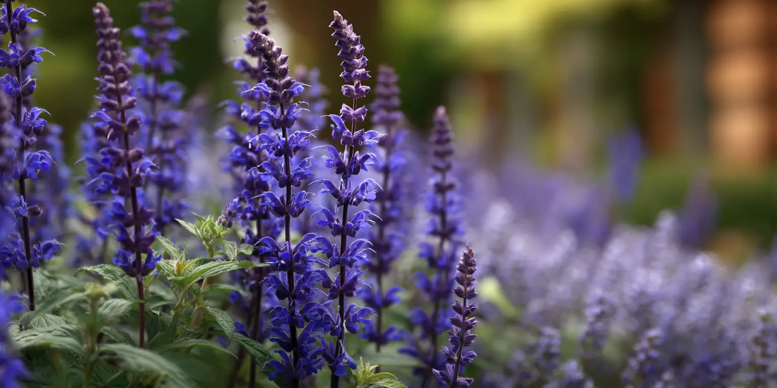 - Taller and more sprawling than compact blue salvias.