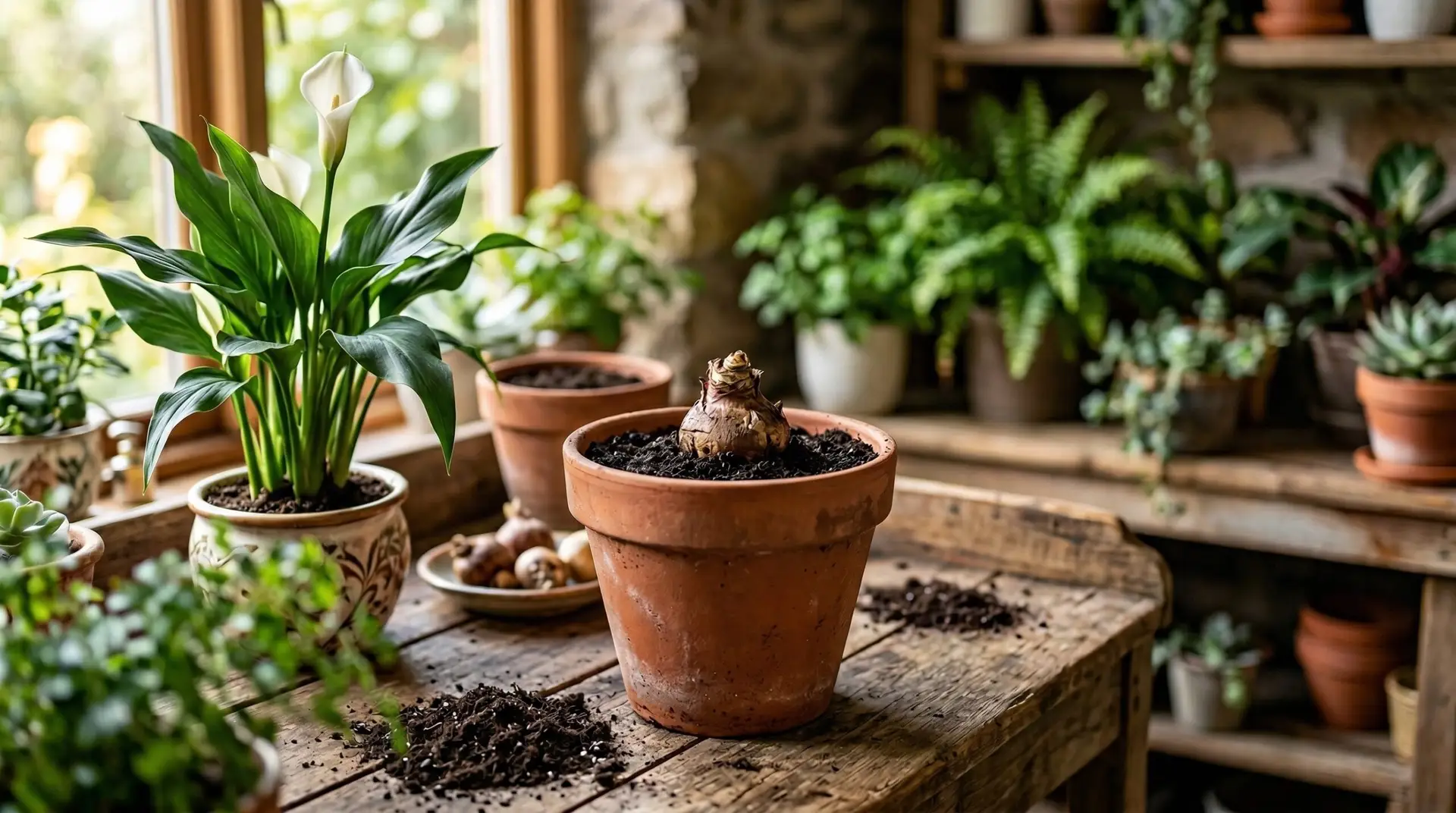Before you start potting up a bare rhizome or repotting an existing plant, you need to gather a few basic supplies. You will need a sturdy container with generous drainage holes at the bottom, a bag of high-quality indoor potting mix, and a small watering can. A heavy clay or ceramic pot is often better than lightweight plastic because calla lilies can become top-heavy when their large arrow-shaped leaves reach full size. If you are starting with a bare rhizome, inspect it closely to find the side with small bumps or growing points, which need to face upward toward the light. If you plant the rhizome upside down, the shoots will have to expend massive amounts of energy curling around the tuber to reach the surface. This unnecessary effort delays growth and weakens the plant right from the start.