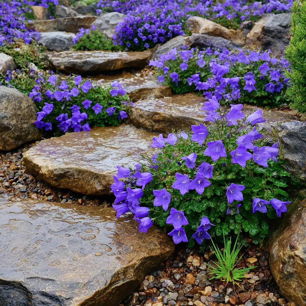 Genus: Campanula. Family: Campanulaceae. The genus includes roughly 300 species native to the temperate Northern Hemisphere, with the center of diversity in Europe and the Mediterranean region. Natural habitats span alpine screes, rocky walls, meadows, open woodlands, and steppe like grasslands. The botanical name derives from the Latin for little bell, a reference to the characteristic corolla shape. Many garden favorites were selected from European species, while a few North American wildflowers such as Campanula rotundifolia, known as harebell, also find their way into gardens. Cultivars and seed strains expand the palette with compact habits, larger flowers, and extended bloom. Knowing the original habitat helps guide placement. Alpine and Dalmatian types favor excellent drainage, while tall border species appreciate deeper soils and even moisture.