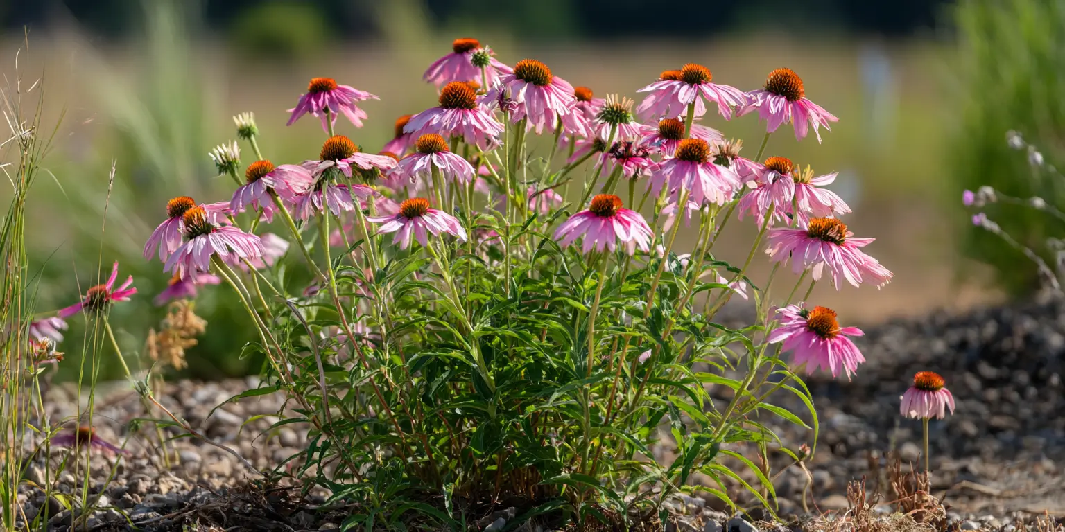 Echinacea angustifolia is the Great Plains narrow-leaf coneflower. It stands out for a compact 12 to 24 inch habit and narrow leaves. It performs best in full sun on lean, well-drained soils. It excels in dry sites and open prairie plantings. It is hardy across cold winters in Zones 3 to 8. It offers earlier summer bloom than many garden selections.