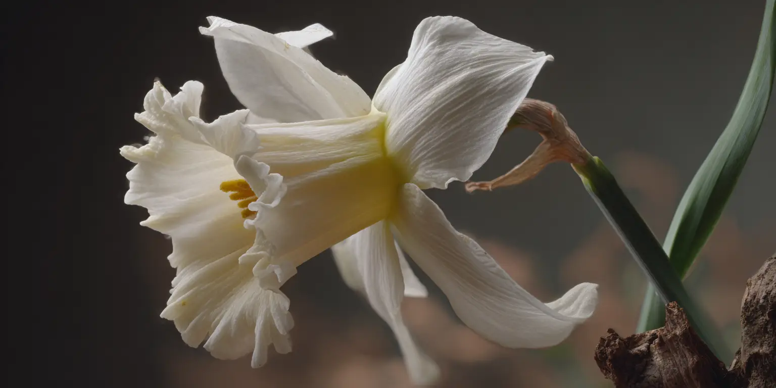 - All‑white trumpet compared with the typical yellow daffodil.
