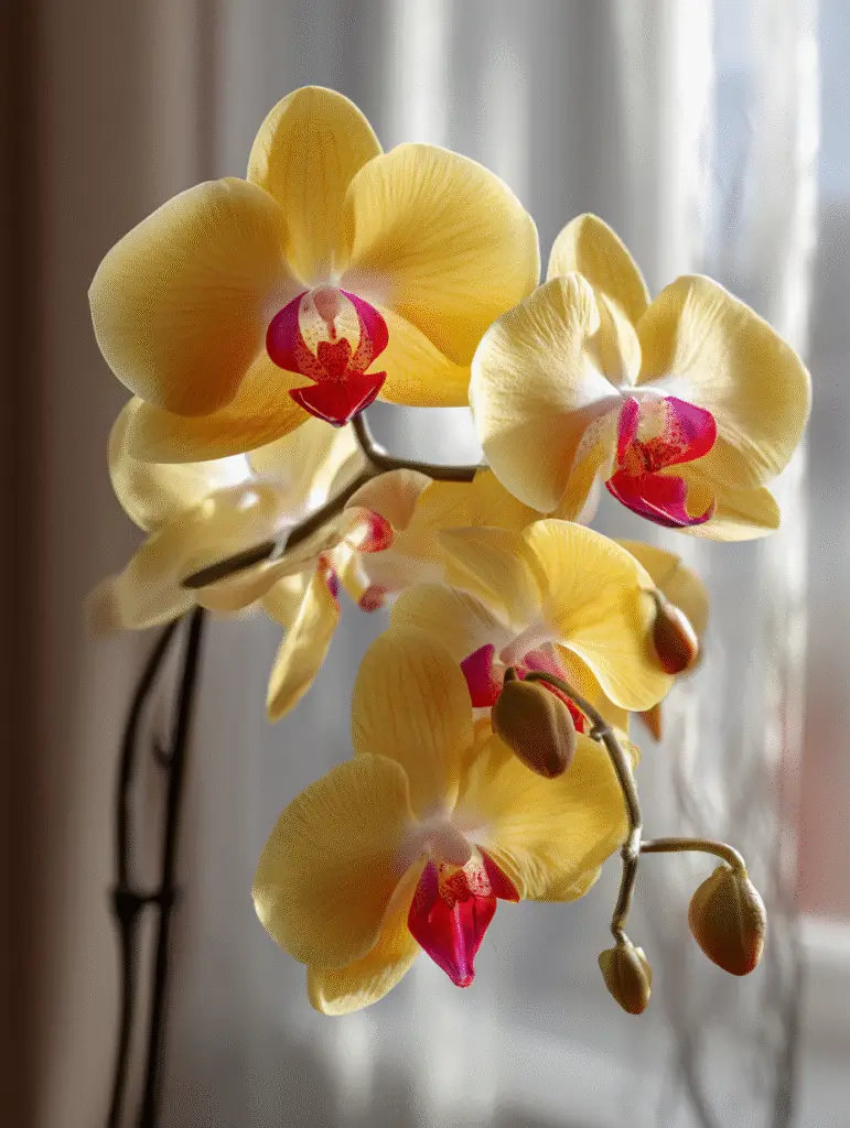 Moth Orchid (Phalaenopsis) brings graceful arching blooms that turn simple windowsills or tabletops into calm, modern retreats.
