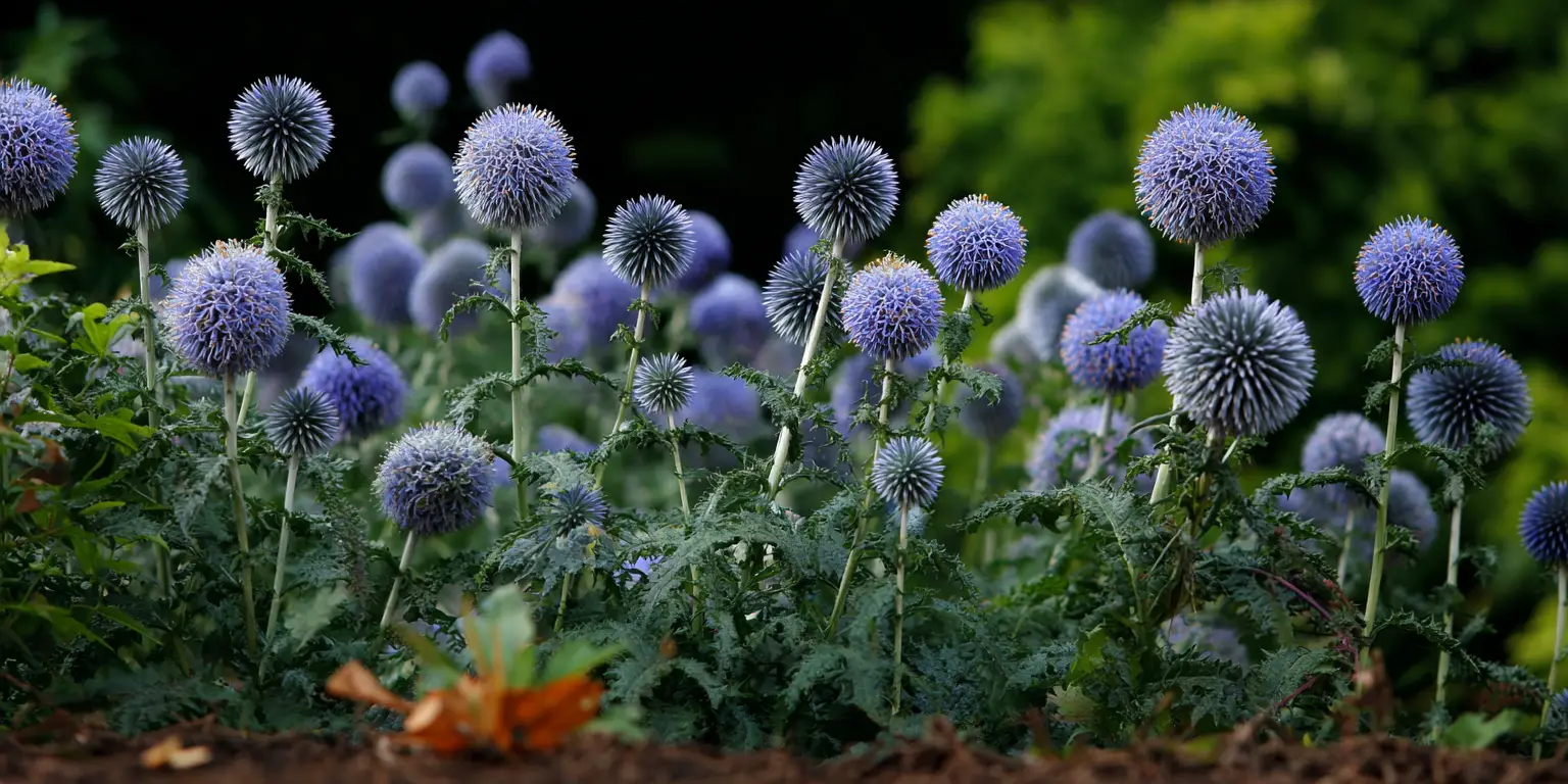 This compact selection produces metallic blue heads on silvery white, branching stems. It is valued for the contrast between blue flowers and pale stems. It suits smaller borders and thrives in full sun and well‑drained soils. Bloom is in late summer across much of North America. Plants are useful for cutting and for dried work.