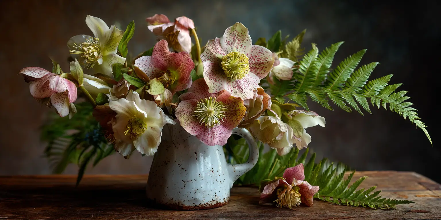 When cutting, use a sharp knife or pruners to make a clean angled cut on the stem, and immediately plunge the cut stems into water. Some florists recommend dipping the bottom inch of the stems in boiling water for a few seconds or briefly searing them with a flame, this can help seal the sap channels and improve water uptake, which in turn reduces wilting. Once conditioned, arrange the hellebore stems in a vase filled with fresh water (ideally filling the vase deeply, as these hollow stems absorb water best when a good portion is submerged). Keep the arrangement in a cool room away from direct heat or sunlight. With proper conditioning, hellebore blooms can last around 5 to 7 days in a vase, and sometimes up to 10 days for the sturdiest varieties. Their nodding flower heads add unique charm to bouquets, and with the right care you can enjoy their subtle winter beauty indoors for about a week.