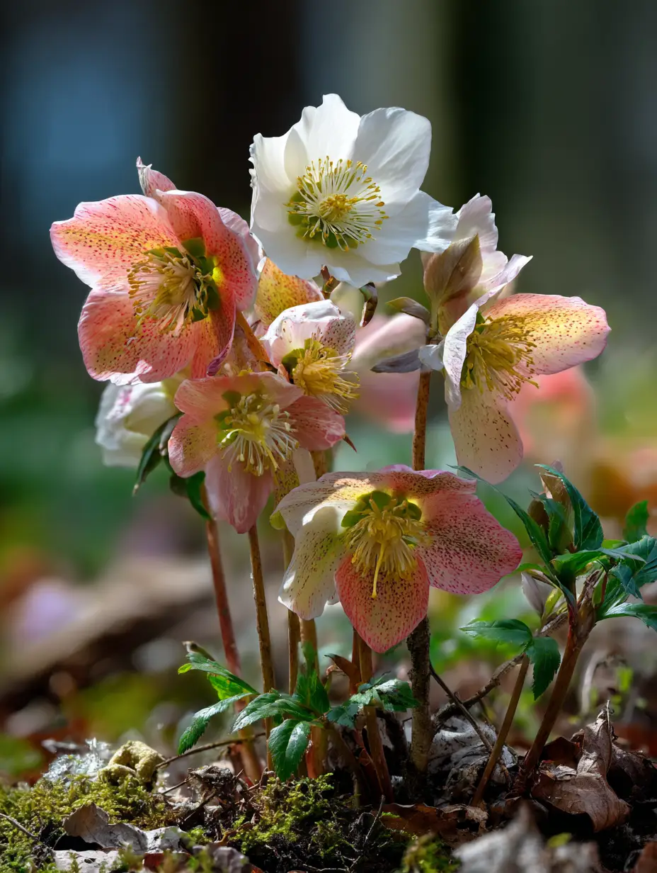 - Forget-Me-Nots (Myosotis spp.) – Low, soft spring color under trees; good living mulch around hellebores.