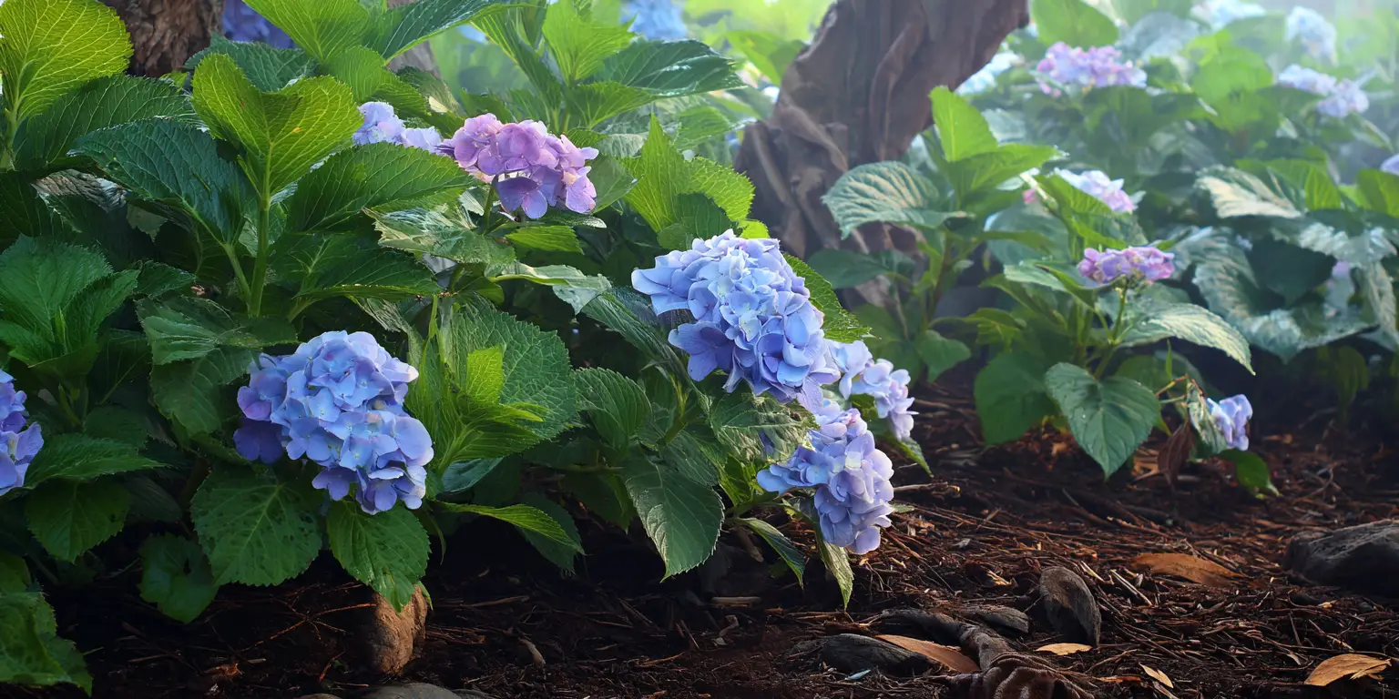 Bigleaf hydrangeas prefer rich, well-drained soil with plenty of organic matter. A loamy soil that retains moisture but drains excess water is ideal. Working compost into the planting area can improve soil structure and fertility, which helps hydrangeas develop robust root systems. One of the most fascinating aspects of Hydrangea macrophylla is the relationship between soil pH and flower color. For many cultivars, acidic soils (approximately pH 5.0 to 5.5) produce blue or purple-blue flowers, because the plant can uptake aluminum more readily in low pH conditions, leading to blue pigmentation. In neutral to slightly alkaline soils (pH 6.0 to 7.0), those same cultivars may bloom pink or even reddish, as aluminum becomes less available to the plant. White-flowering varieties generally remain white regardless of soil pH. Gardeners can influence bloom color by adjusting soil chemistry: for example, adding garden sulfur or aluminum sulfate can gradually acidify the soil to encourage blue blooms, while adding lime can raise pH to coax pink tones. It’s important to change pH slowly and moderately – drastic additions of aluminum sulfate can damage roots. Always follow recommendations and test your soil pH first. Hydrangeas benefit from soil that is similarly suited to other acid-loving plants like azaleas, meaning a slightly acidic environment with good organic content. Ensure the soil is not extremely alkaline (above pH 7.5), as hydrangeas may develop nutrient deficiencies (like iron chlorosis) in highly alkaline ground. Regularly top-dressing with compost or a balanced, slow-release fertilizer can also keep the soil fertile and supportive of healthy growth. By providing the right soil conditions and monitoring pH, you’ll not only keep your Hydrangea macrophylla healthy but can also enjoy some control over its bloom palette.