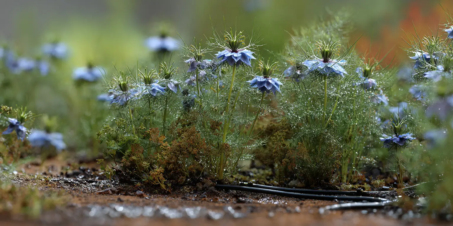 Love‑in‑a‑Mist needs consistent moisture during germination and establishment, then steady but not excessive watering through bloom. As a rule of thumb for mixed flower beds, supply about 1 to 1.5 inches of water each week from rain or irrigation, increasing toward two inches during prolonged hot spells. Water deeply to encourage roots to explore below the surface and let the top half inch of soil dry slightly between waterings. In containers and raised beds, check more often because potting mixes and elevated beds dry faster than in‑ground soil. A simple rain gauge and a weekly look at the soil with your fingers are enough to keep moisture on track without guesswork.