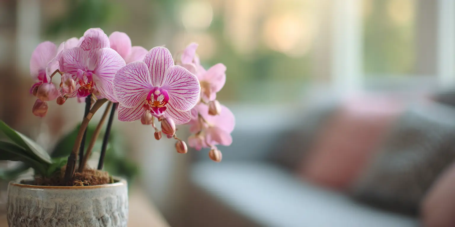 - Provide extra humidity with a pebble tray: If your home is dry, especially in winter with heating, boost humidity around your orchid by placing the pot on a tray filled with pebbles and water. Ensure the pot sits on the pebbles above the water line (not in the water) – this way, as the water evaporates, it creates a humid micro-climate around the plant. Grouping orchids or other plants together can similarly raise local humidity. This mimics their natural environment and can lead to better growth and bloom quality.