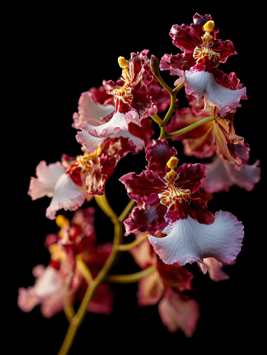 The Oncidium Orchid is a striking tropical orchid known by the charming nickname “dancing lady orchid.” This name comes from its frilly, skirt-like blooms that dance in the breeze, often in brilliant shades of yellow and brown. Oncidiums are epiphytic orchids (air plants) native to Central and South America, where they grow on tree branches in warm, humid forests. With hundreds of species and countless hybrids, Oncidiums offer a dazzling variety of colors and patterns – from the classic yellow flowers with brown speckles to white, red, pink, and even purple flowers in some modern hybrids. They produce multiple blooms on arching or branching spikes, creating a cloud of delicate flowers that can last for weeks.