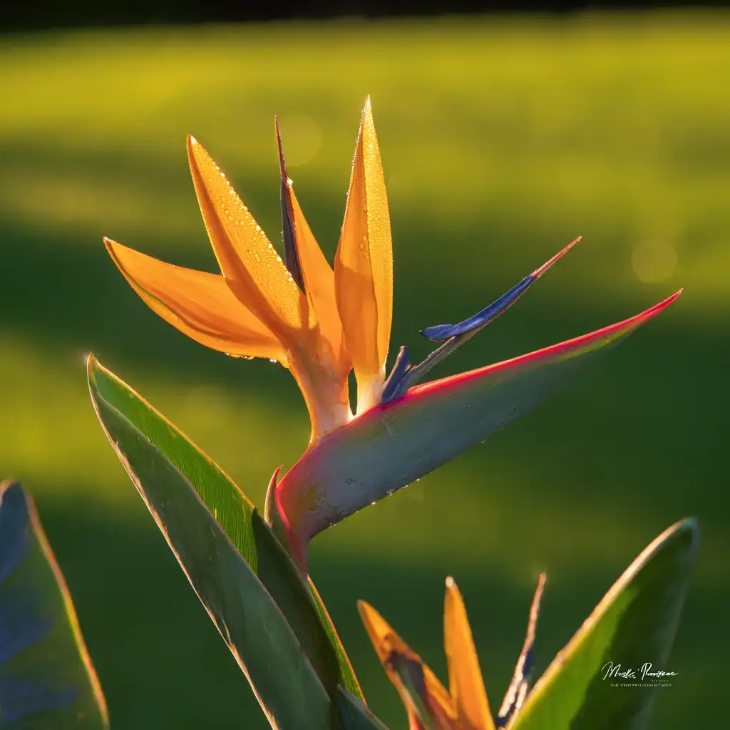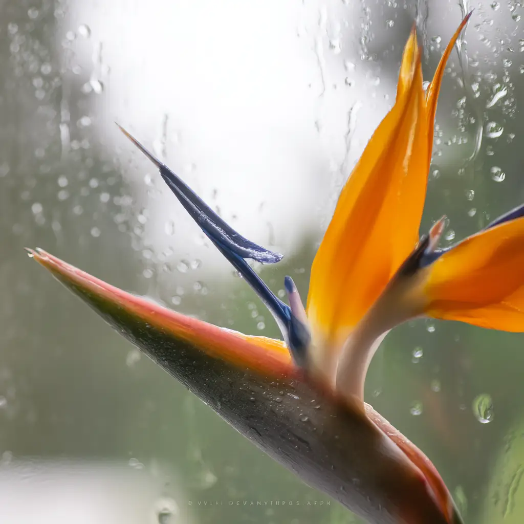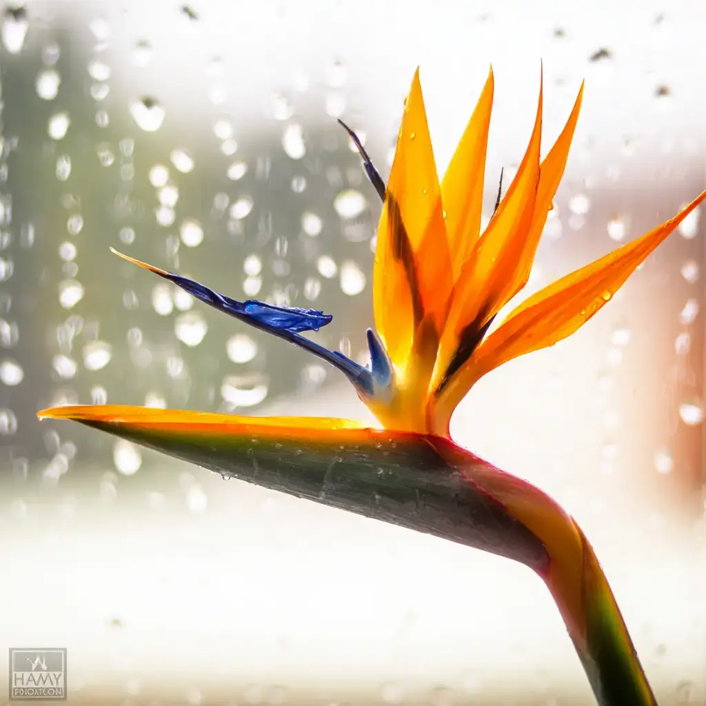 Tropical perennial with orange and blue crane‑like flowers where winters are mild or indoors elsewhere.