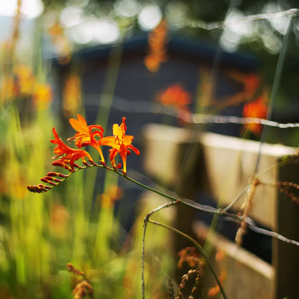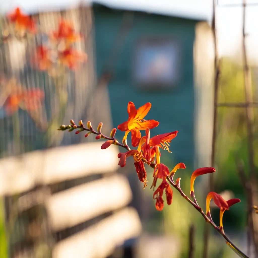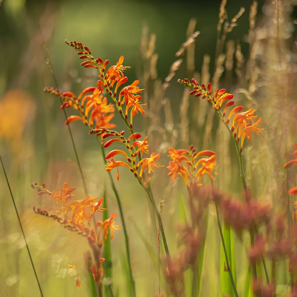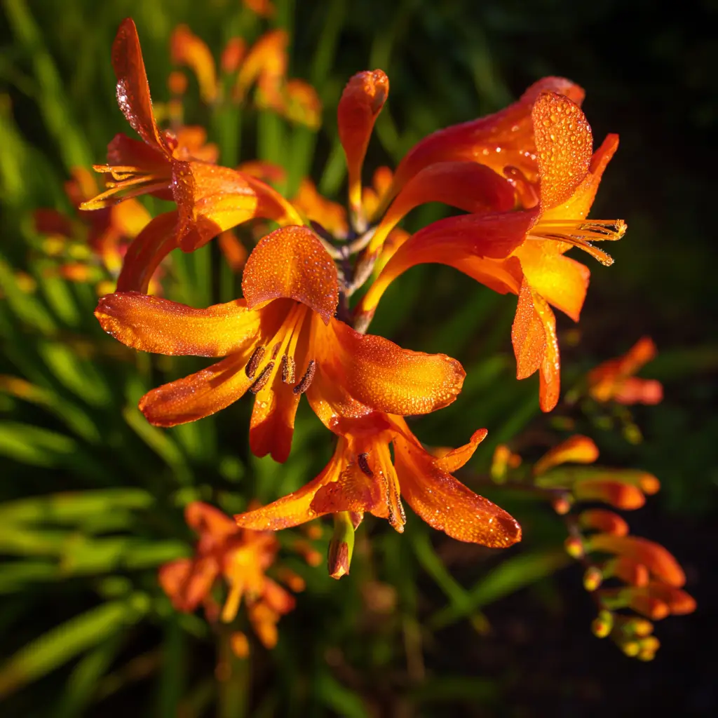 Arching stems with tubular orange blooms in mid‑ to late summer.