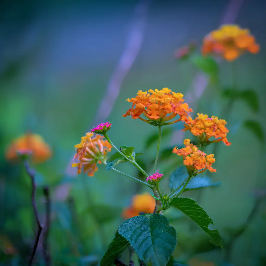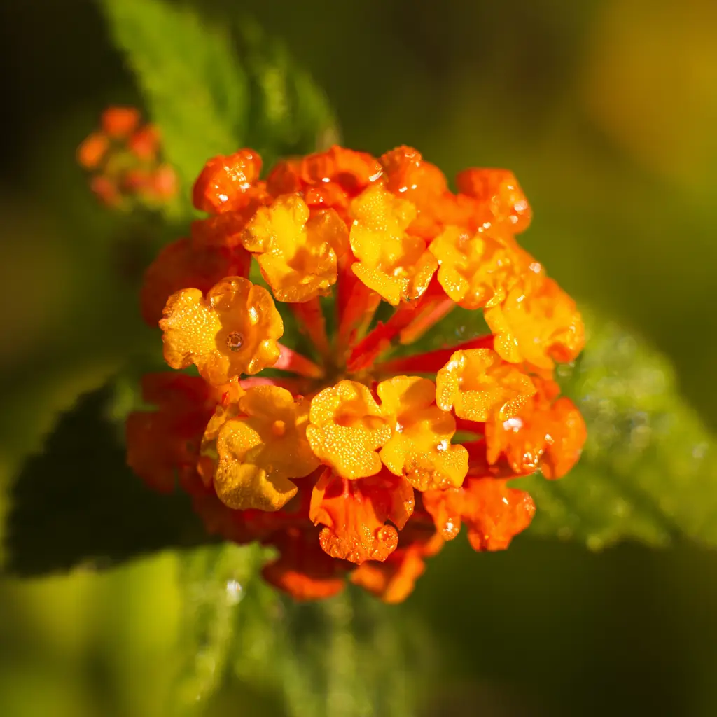 Heat‑loving subshrub or annual with multicolored clusters blending orange, yellow, and red.