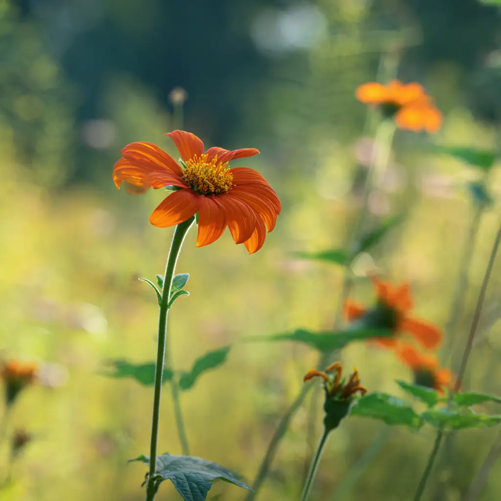 Tall, airy annual with bright orange daisies that bloom until frost.