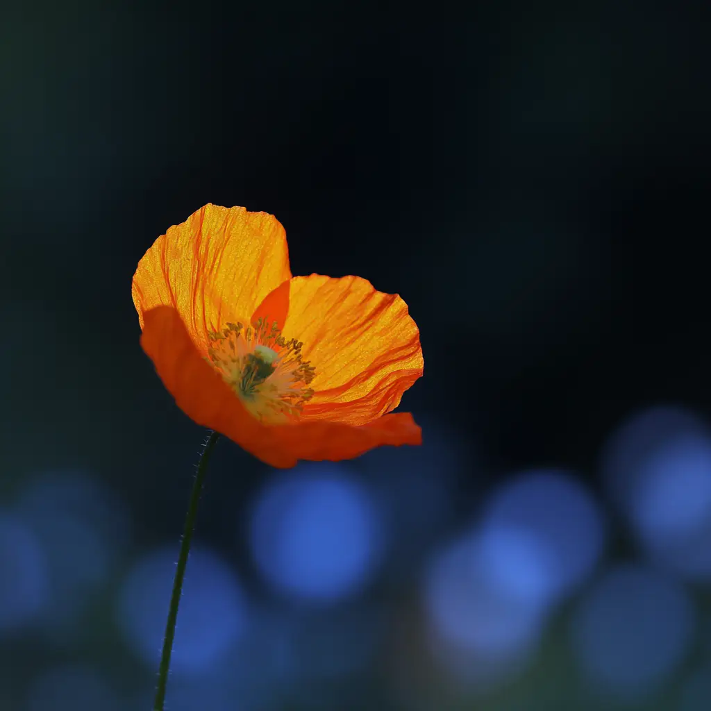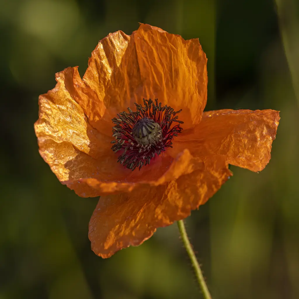 Silky, crinkled petals in glowing orange on cool‑season plants; includes California poppy for droughty sites.