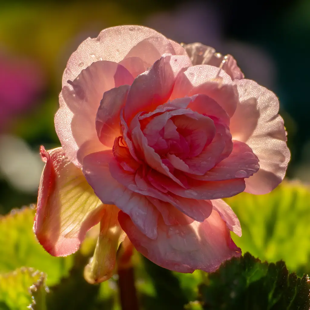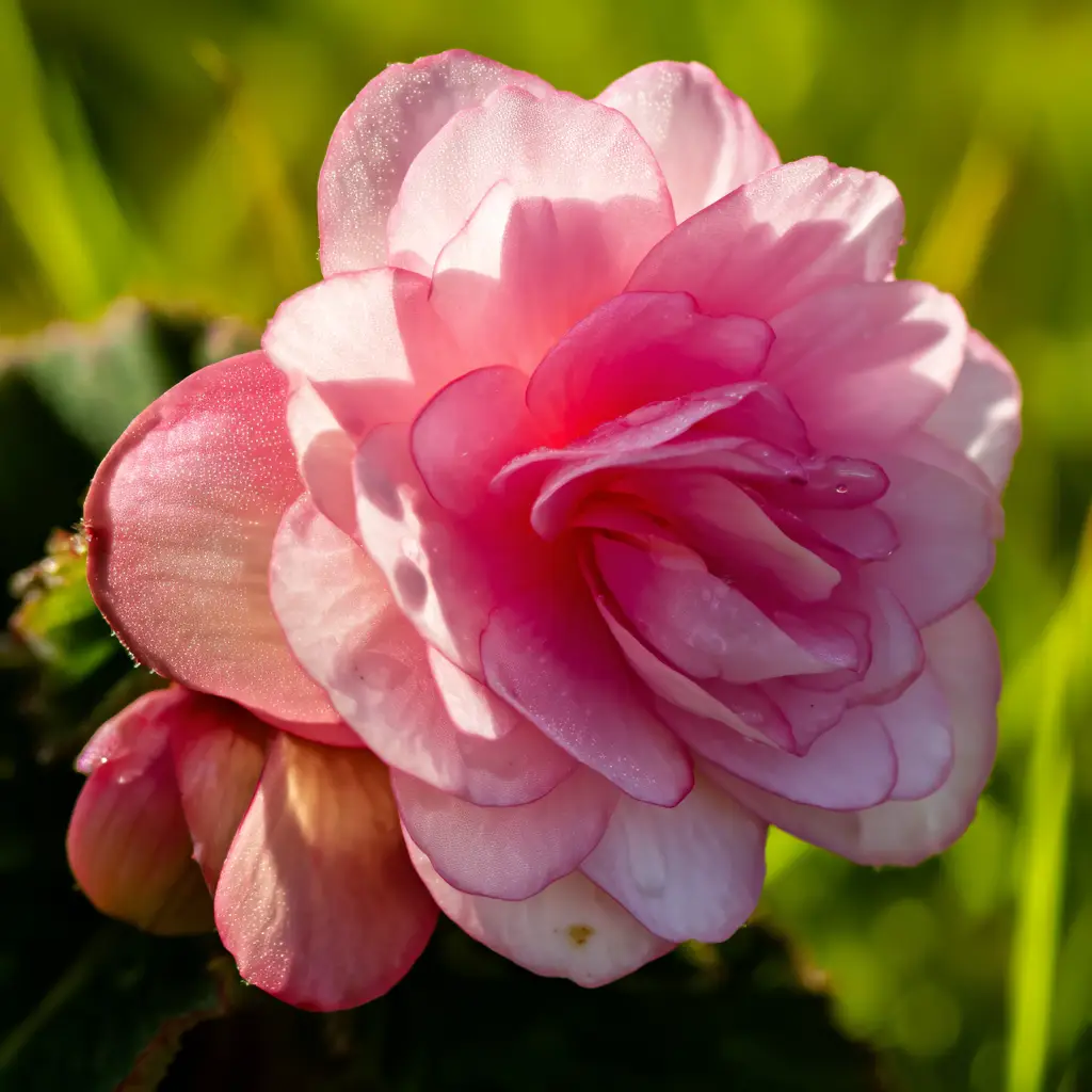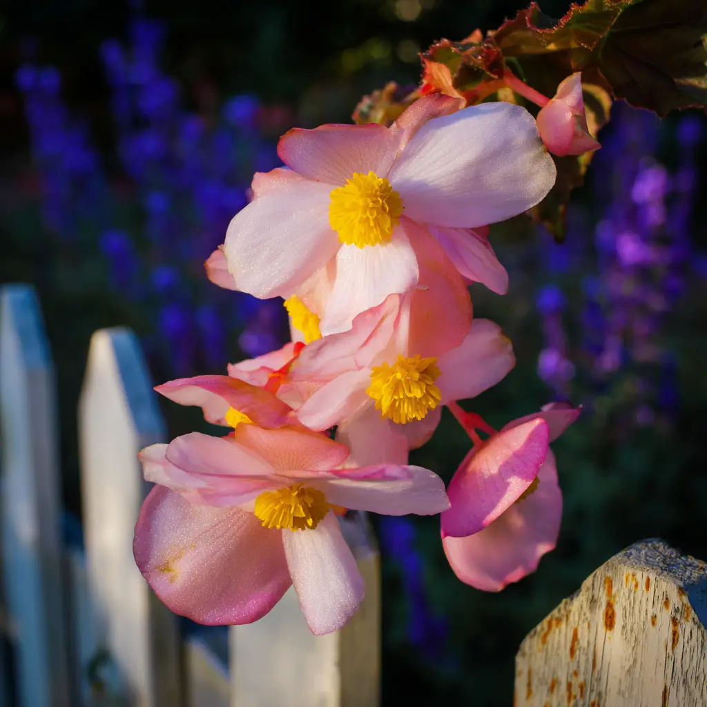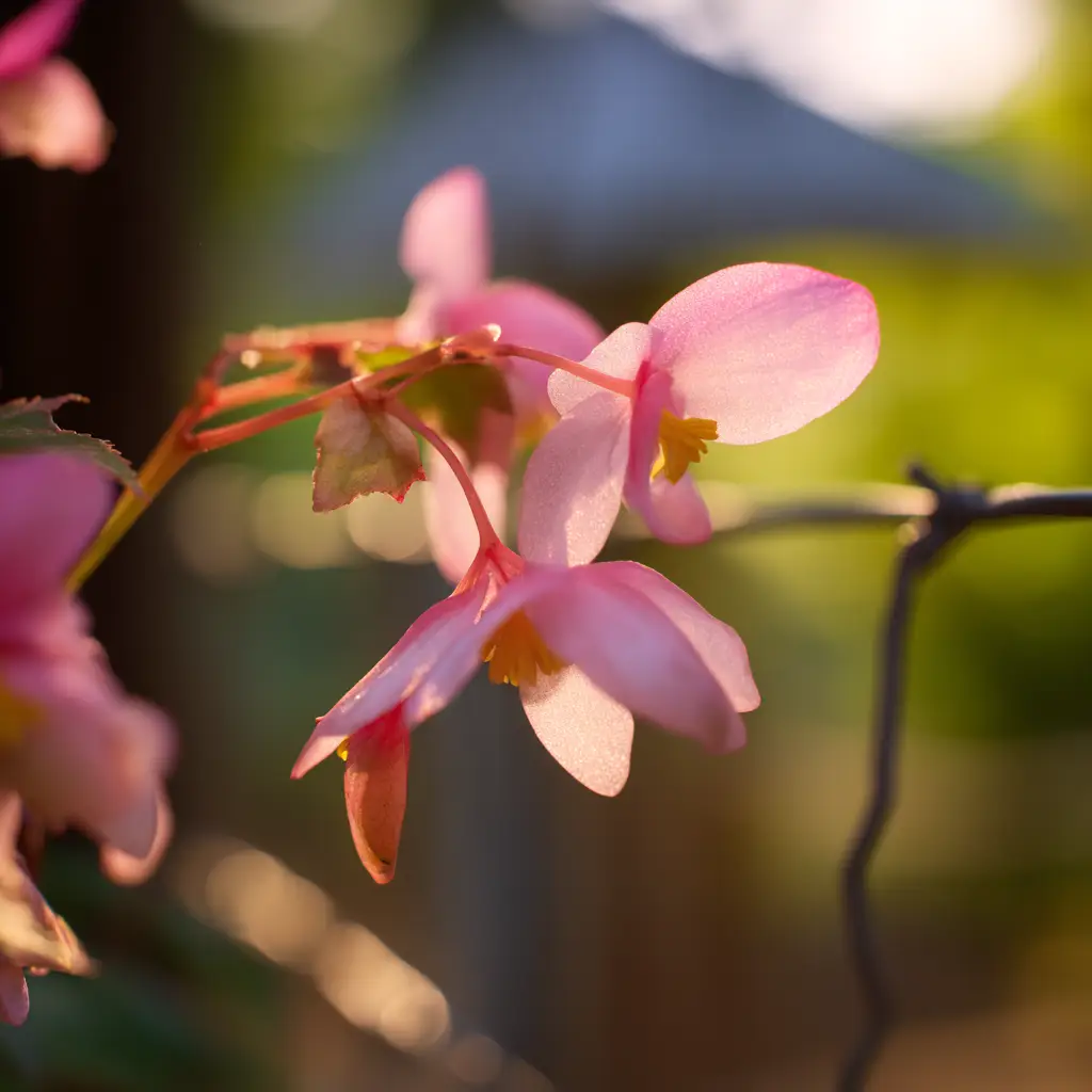Shade‑tolerant bedding or tuberous types with continuous pink color in containers and beds.