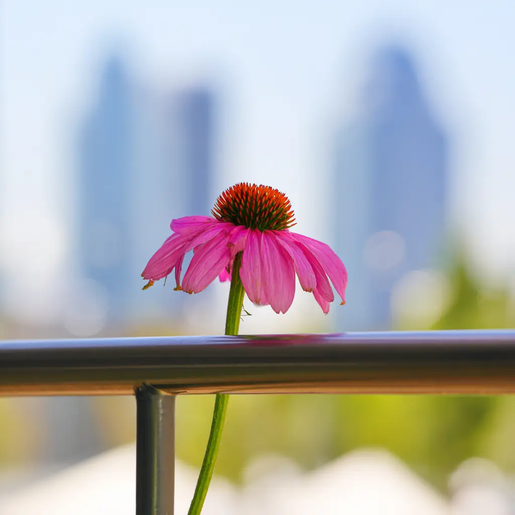 Rugged prairie perennial with rosy‑pink petals and prominent cones; drought and pollinator friendly.