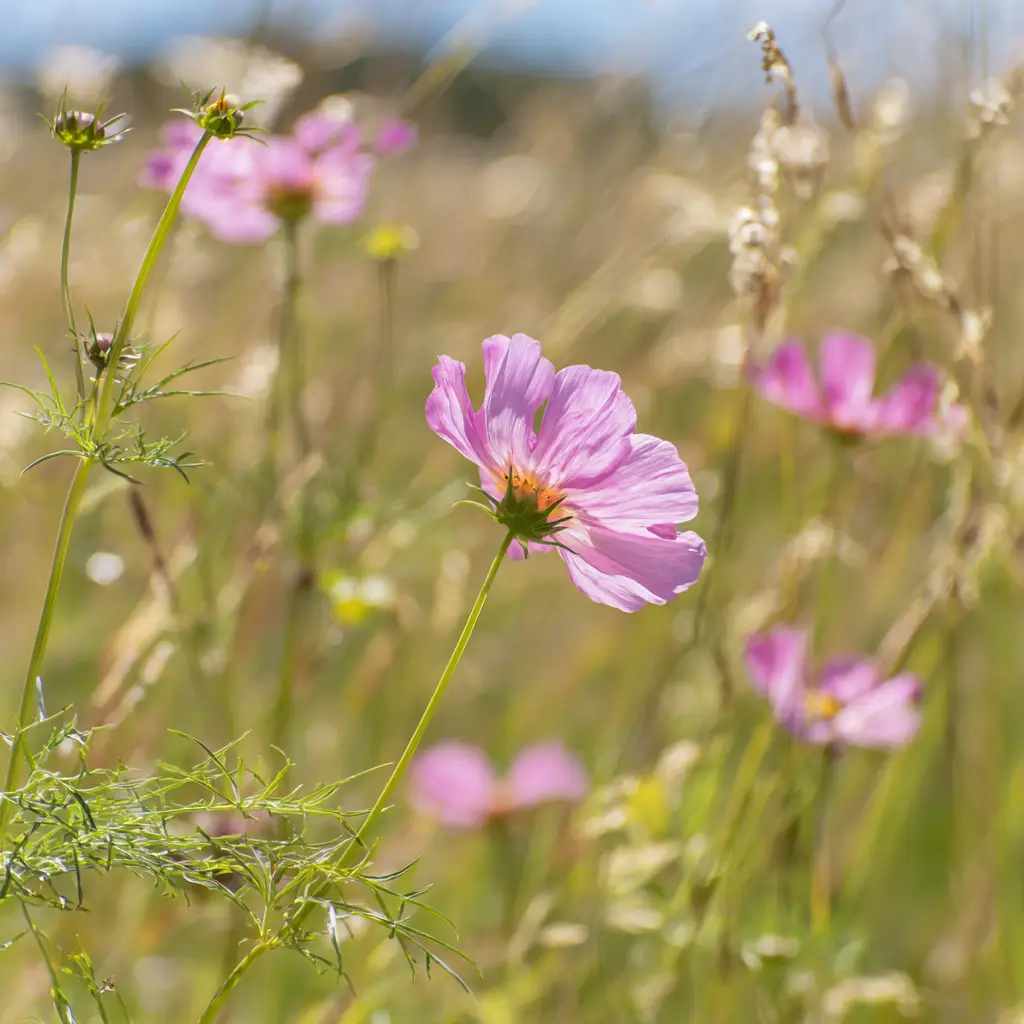 Airy annuals with ferny foliage and satiny pink daisies that sway above borders.