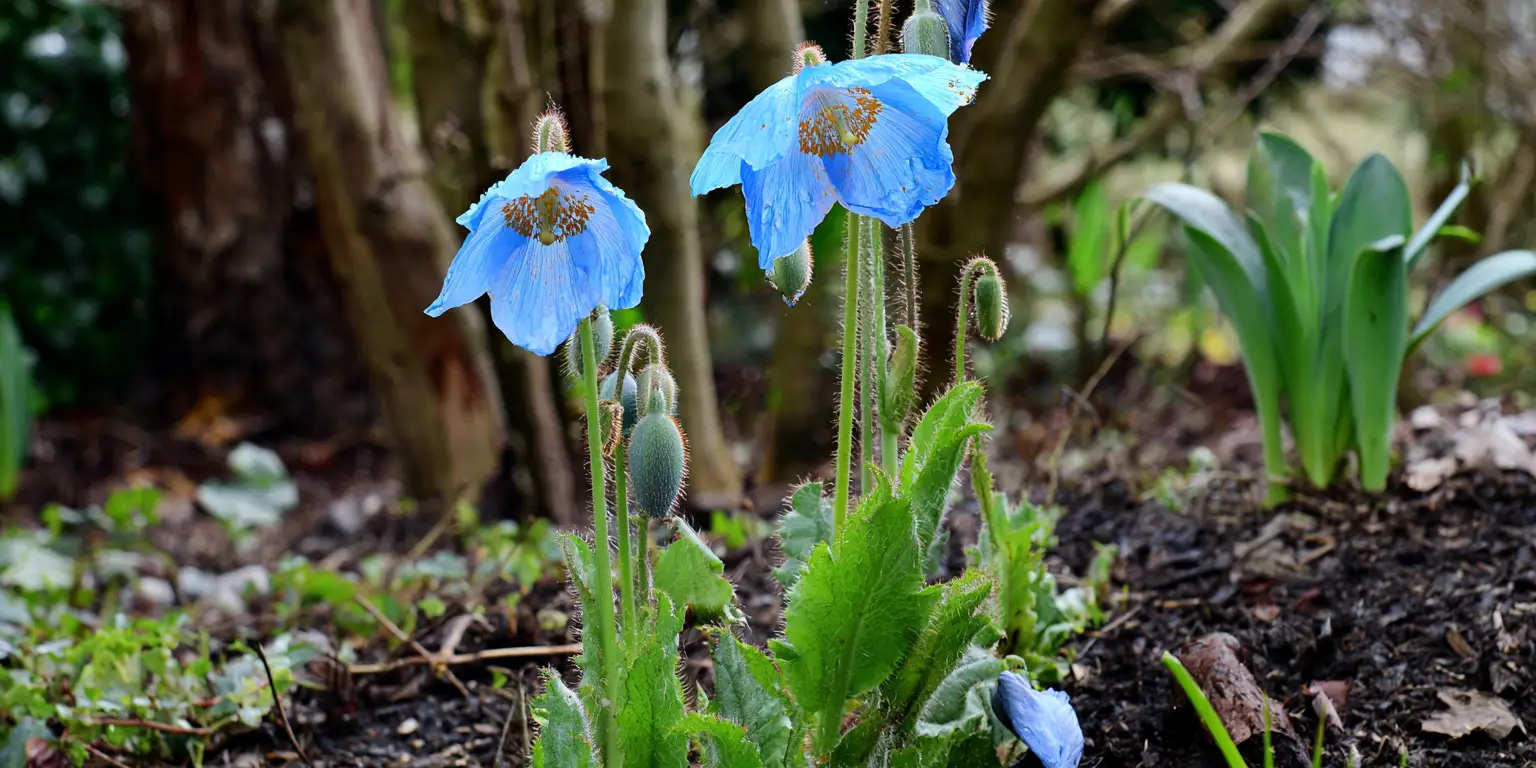 Himalayan blue poppy is a cool‑summer perennial prized for clear blue flowers. It needs part shade, evenly moist but sharply drained, humus‑rich soil, and an acidic reaction. Plants are challenging where summers are hot or dry. Best performance in the Pacific Northwest, coastal Alaska, and other cool, moist summer climates. In less suitable areas it is often short‑lived. Plant among ferns and woodland perennials that like similar conditions.