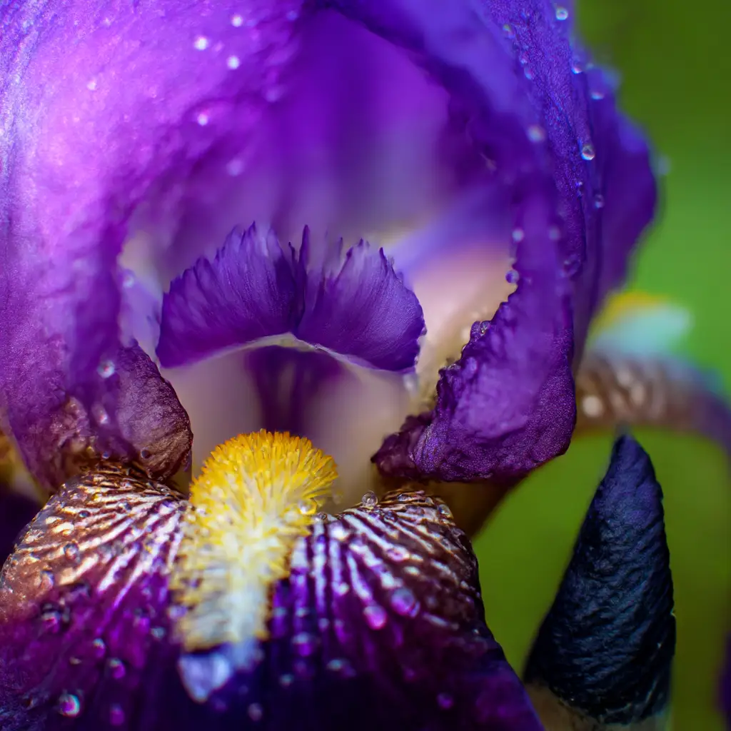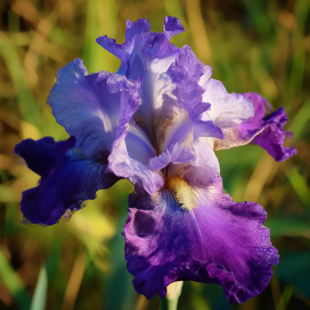 Rhizomatous perennial with swordlike foliage and ruffled blooms in late spring; wide range of purples and bicolors.