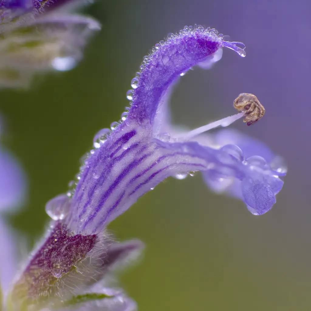 Low, mounding perennial with soft purple flowers over aromatic foliage from late spring to summer.