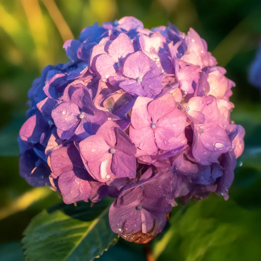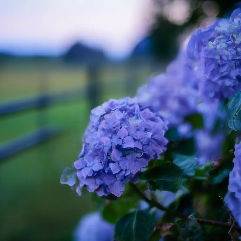 Mophead or lacecap shrubs that can turn purple where soil pH and aluminum availability allow.