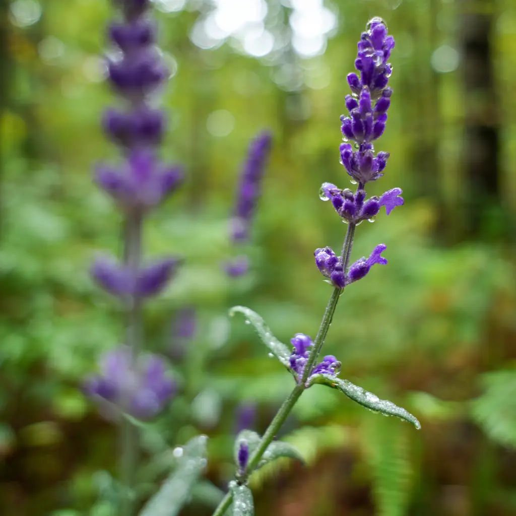 Fragrant Mediterranean shrub with narrow gray leaves and violet flower spikes in early to midsummer, best in full sun and lean, well-drained soil.