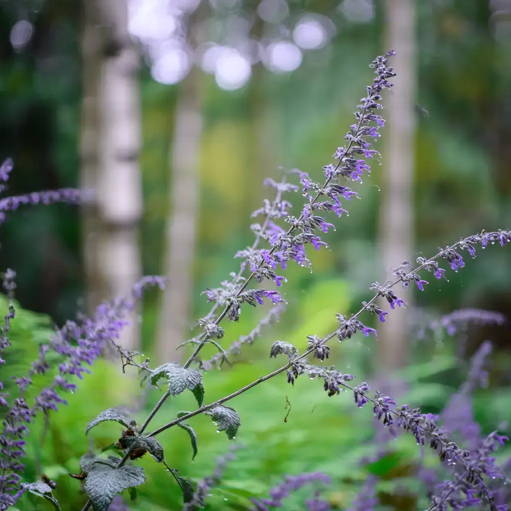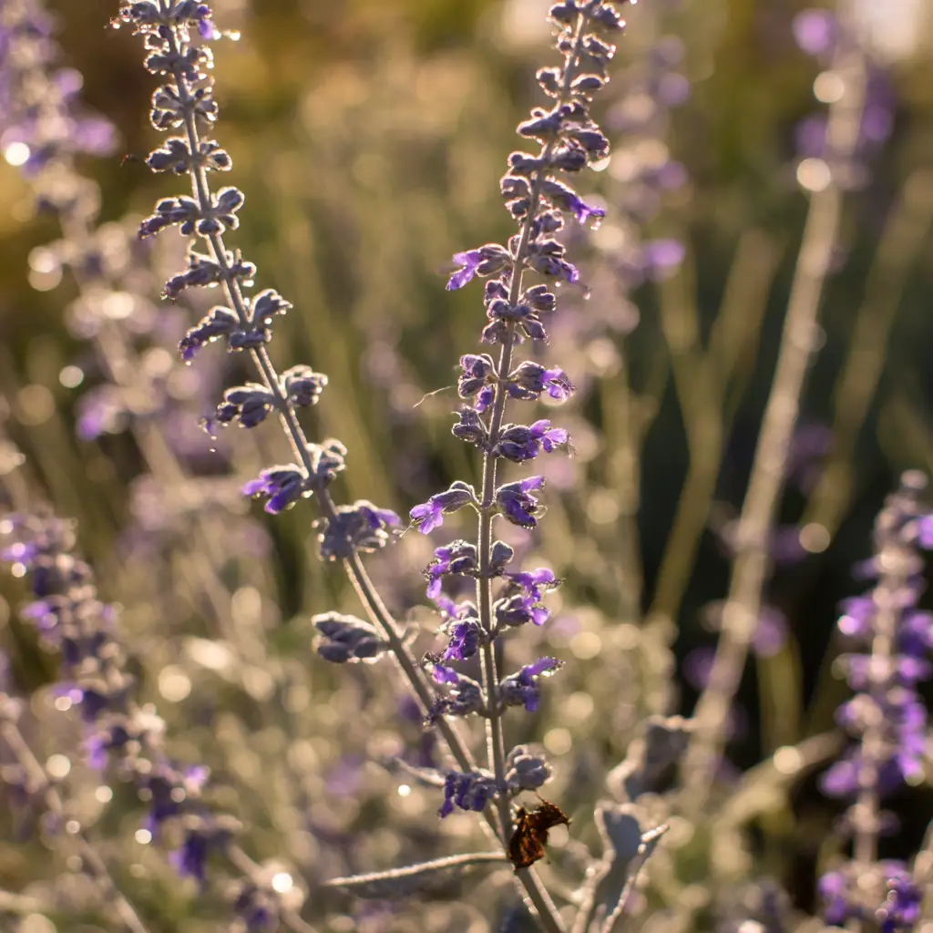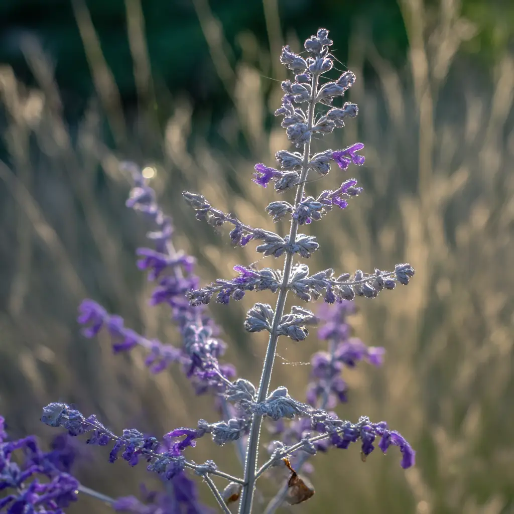 Airy shrub-like perennial with silver stems and clouds of lavender-purple in summer to fall.