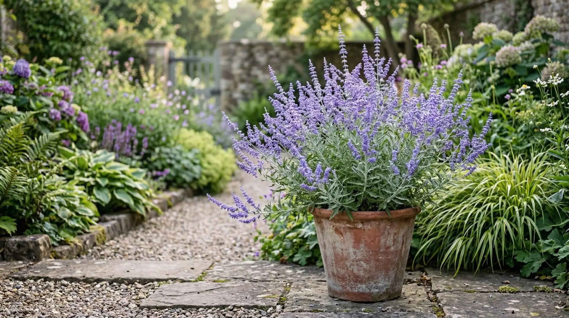 Walking out to a sun-baked patio in late July reveals exactly which plants can handle the heat and which ones just want to give up. When the petunias are wilting and the daisies look exhausted, Russian sage is usually standing tall, completely ignoring the blazing sun. It is a tough, woody perennial that thrives on neglect in the ground, but putting it in a container changes the rules entirely. The standard varieties grow massive and tend to flop over, turning into a sprawling silver-blue mess across the concrete. Growing container Russian sage successfully requires a specific approach to keep that upright, airy look without it taking over the entire seating area. The trick is understanding how to recreate its natural, rugged environment inside the confined space of a pot.