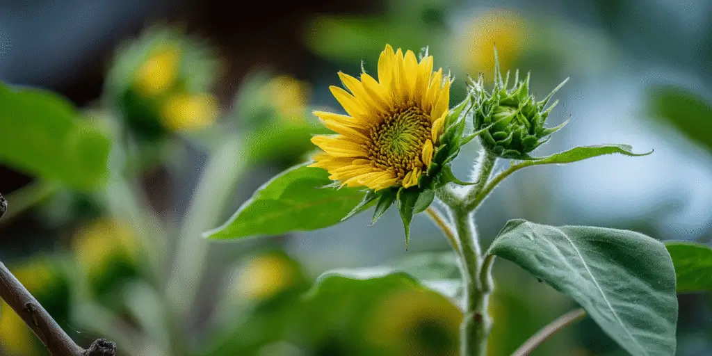 In terms of spread, single-stem sunflowers have a narrow footprint – often only 1 to 2 feet wide – since they typically consist of one main stem with large leaves and a single flower head. Branching sunflowers form bushier plants with multiple stems, these can spread 2 to 4 feet wide as they send out side branches bearing additional blooms. Given their stature, tall sunflowers should be positioned so they won’t shade smaller neighboring plants. Their sturdy, upright stems usually support the blooms well, but very tall varieties may benefit from staking or protection from strong winds to prevent toppling.