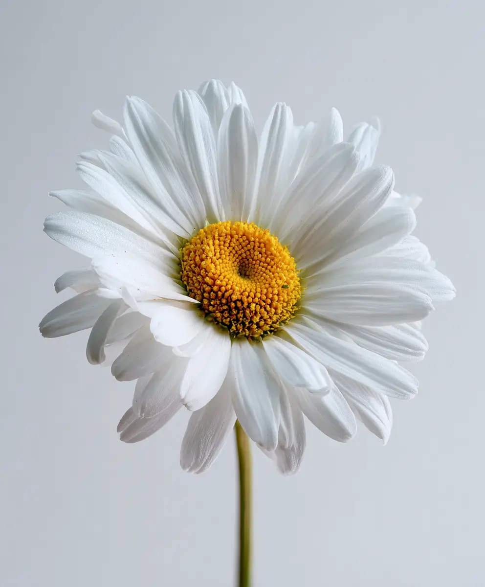 - Daisy (Leucanthemum × superbum) – A classic white-petaled flower with a bright yellow center, long associated with innocence. Daisies bloom prolifically from early summer onwards and require minimal care, making them a beloved staple in cottage gardens.