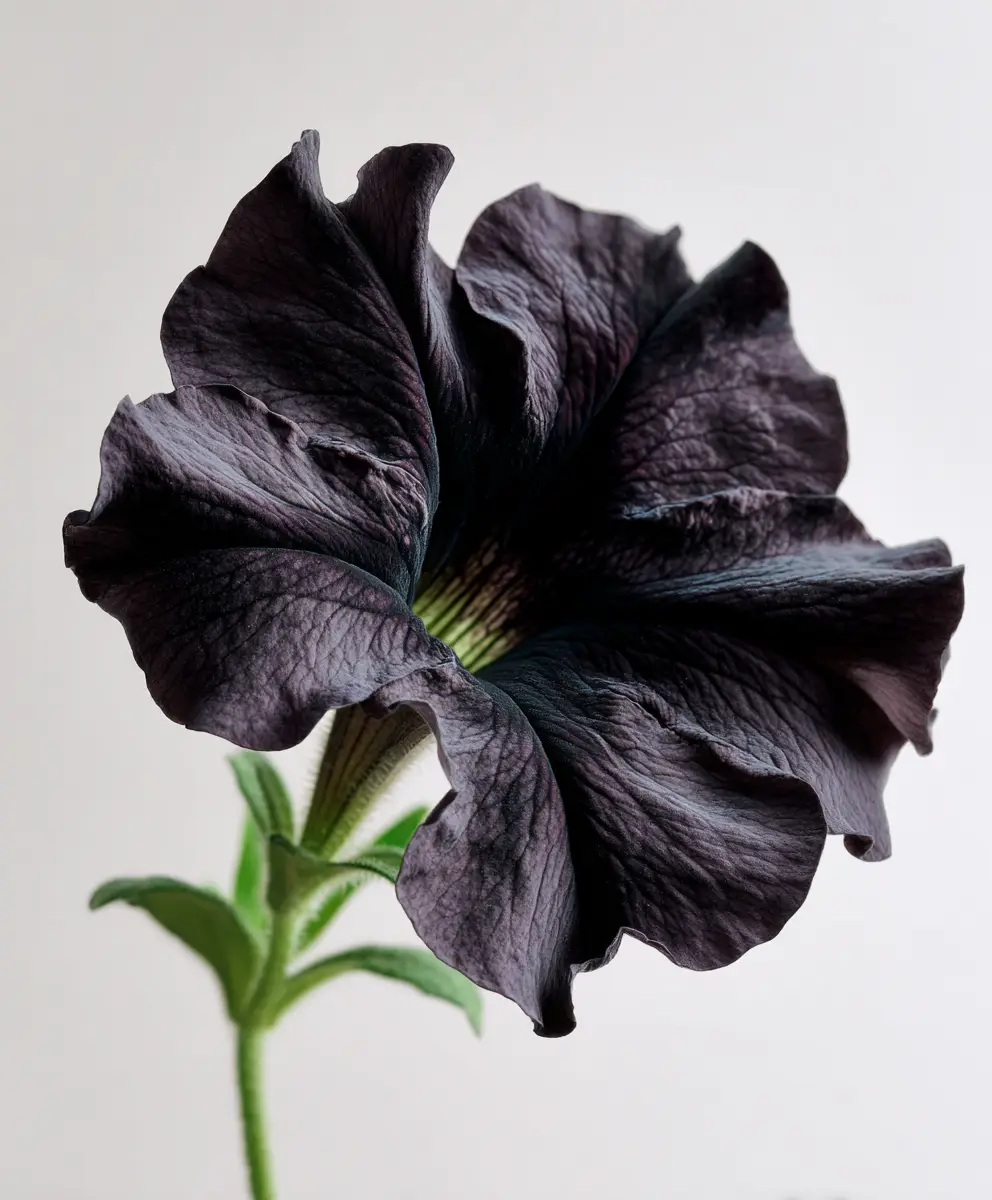 - Black Petunia (‘Black Velvet’) – A modern petunia cultivar that sports velvety near-black petals. This annual blooms from late spring to autumn and does best in full sun with regular feeding. Often used as a novelty accent in containers or flowerbeds, Black Velvet petunias provide striking contrast against brighter blooms. Pinching off spent flowers encourages continuous blooming and a fuller shape.
