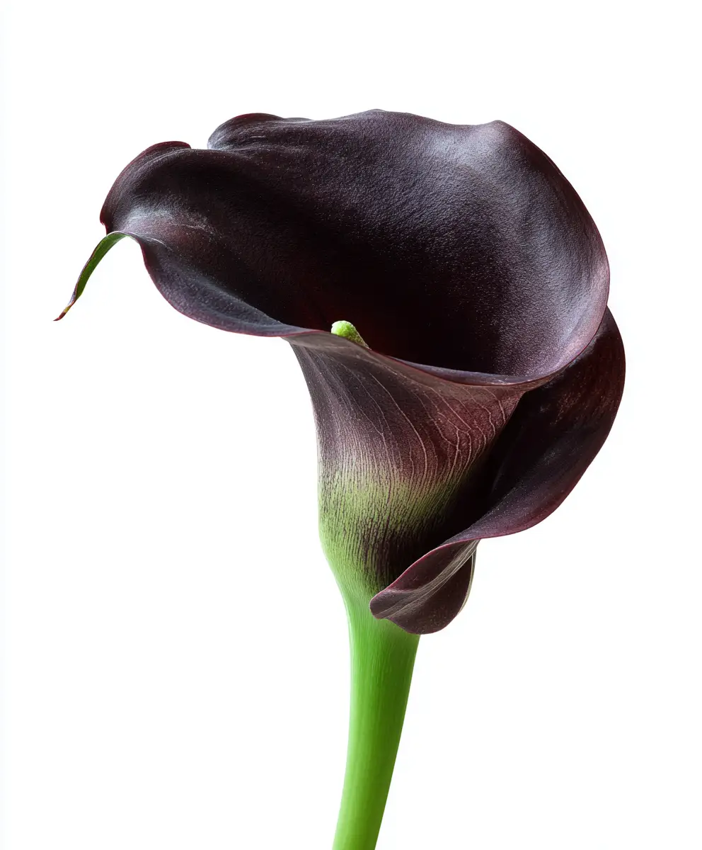 - Black Calla Lily (Zantedeschia hybrid) – An elegant calla lily variety featuring chalice-shaped blooms of deep purple-black. Rising above glossy green leaves, these exotic flowers bloom in summer and make dramatic cut flowers. Black calla lilies grow from tubers planted in spring; they prefer rich, moist soil and do well in full sun to partial shade. In cooler climates, the tubers can be lifted and stored over winter.