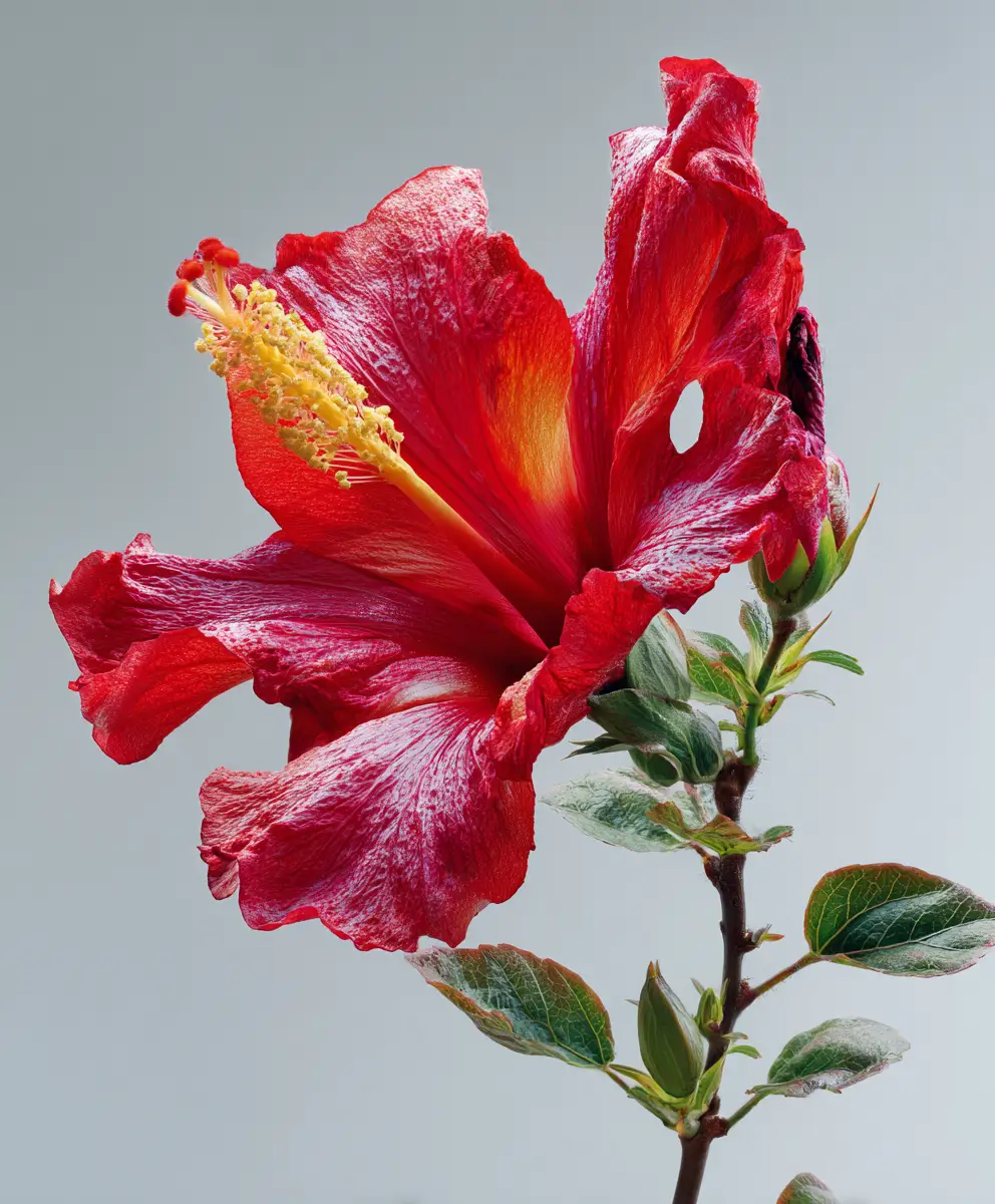 - Hibiscus (Hibiscus rosa-sinensis) – A tropical shrub (often grown as a patio container plant in cooler zones) that produces large red funnel-shaped flowers with prominent stamens. Tropical hibiscus blooms continuously in warm weather, attracting hummingbirds with its nectar. In colder climates, hardy hibiscus varieties can be grown, offering similarly showy red blooms on herbaceous plants. All hibiscus adore sun and consistent moisture.