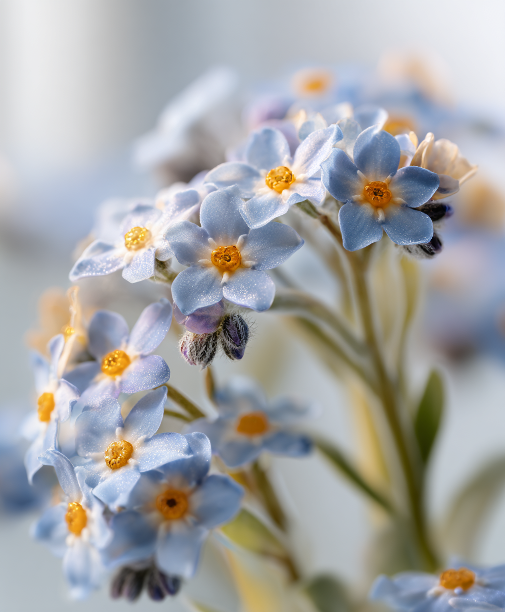 - Forget-Me-Not (Myosotis sylvatica) – A low-growing plant that carpets the ground with tiny sky-blue flowers in spring. Often found under shrubs or along shaded paths, it self-seeds readily, ensuring its charming blue blooms return each year with minimal effort.