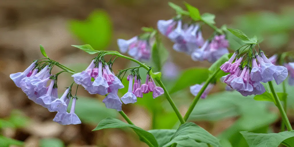 Mertensia virginica is a spring ephemeral native to rich floodplain woods and deciduous forests in eastern North America. Its pink buds open to clusters of bell shaped blue flowers that glow in shade. Plants reach 18 to 24 in tall and 12 to 18 in wide. Bloom typically peaks from April to May across much of North America. Foliage yellows and dies back by early summer. It pairs well with later emerging shade perennials. It thrives in moist, humus rich, well drained soil in partial to full shade.
